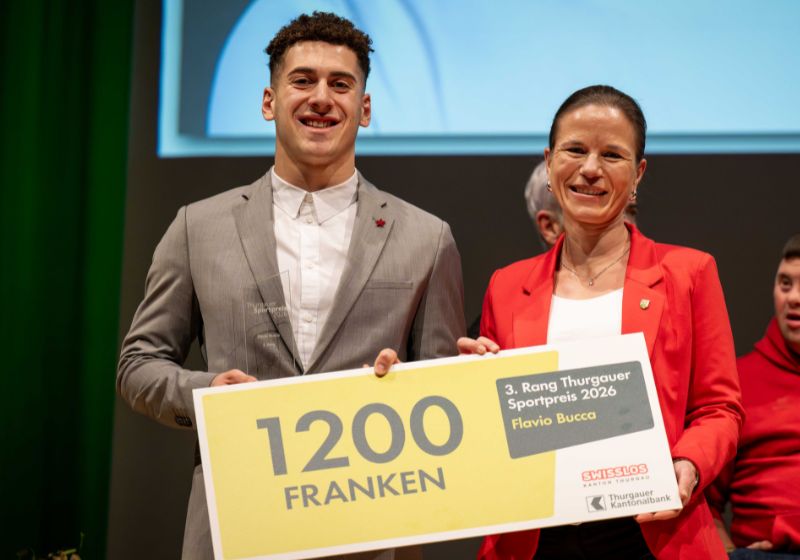 | Der Preis für den dritten Rang am Thurgauer Sportpreis wurde Flavio Bucca überreicht.