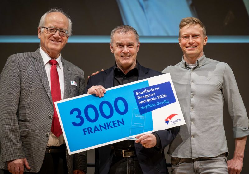 | Die Laudatio für den Thurgauer Sportförderer des Jahres 2026, Matthias Gredig, hielt Marathon-Schweizermeister Patrik Wägeli. Den Preis überreichte Christoph Tobler, Präsident des Panathlon Club Thurgau.